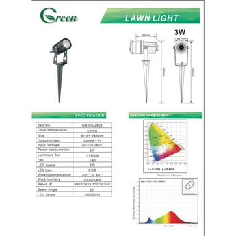 GREEN, 3W, IP65-3000K, Earth spike, die cast aluminium body